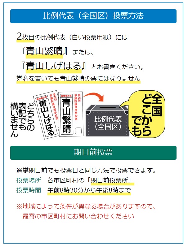 でも、青山さんには投票したいから、不在者投票に