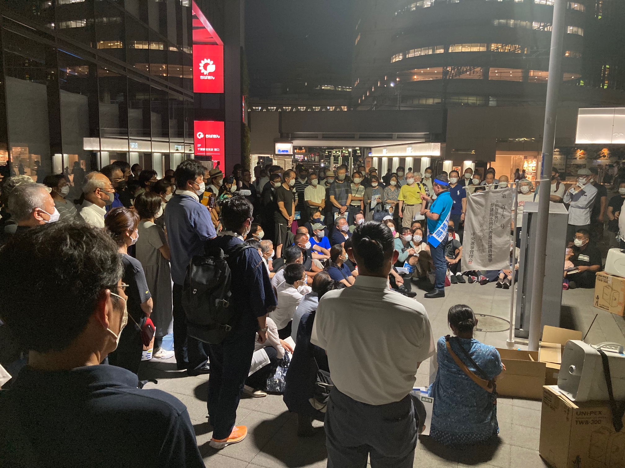 ▼6月27日月曜、千葉駅前での演説が終わったあと、恒例のグータッチ&臨時サイン会のまえに、一度、全員集合しました。