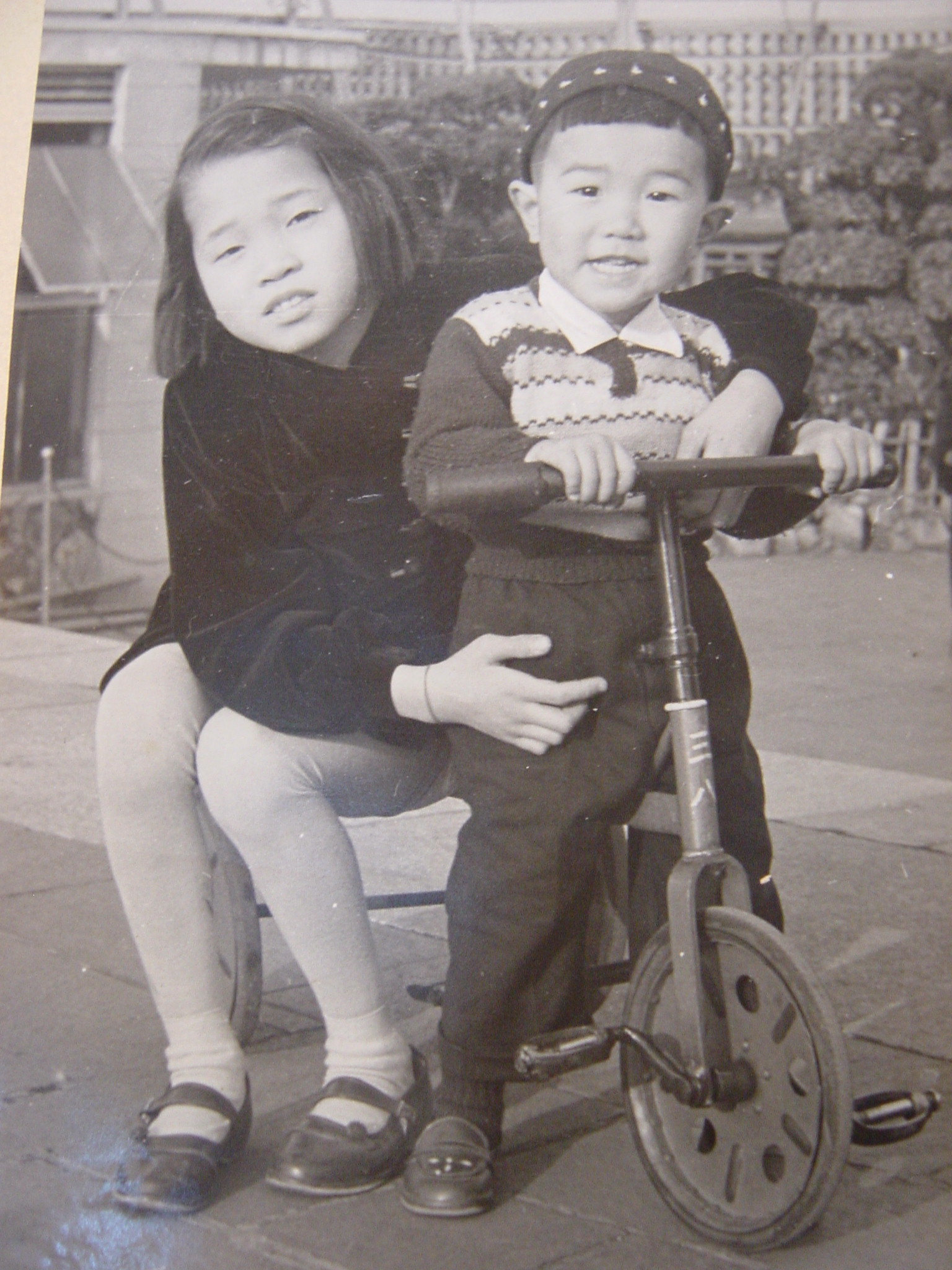 ( 神戸大丸の屋上にて、姉と共に。かつてデパートの屋上は、子どもたちの遊び場でした )