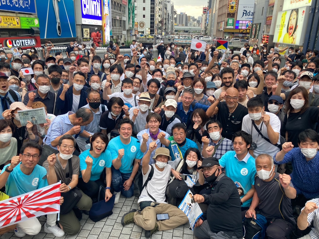 ▼通天閣で遊説するとき、いずれも「日本の尊厳と国益を護る会」(護る会)メンバーの長尾敬・前衆議院議員(3年後の参議院全国比例で出馬予定。この3年後に当選すれば、護る会副代表に復帰していただく予定)、大西宏幸・前衆議院議員(次期総選挙の大阪1区で再起を目指します)が駆けつけてくれました。