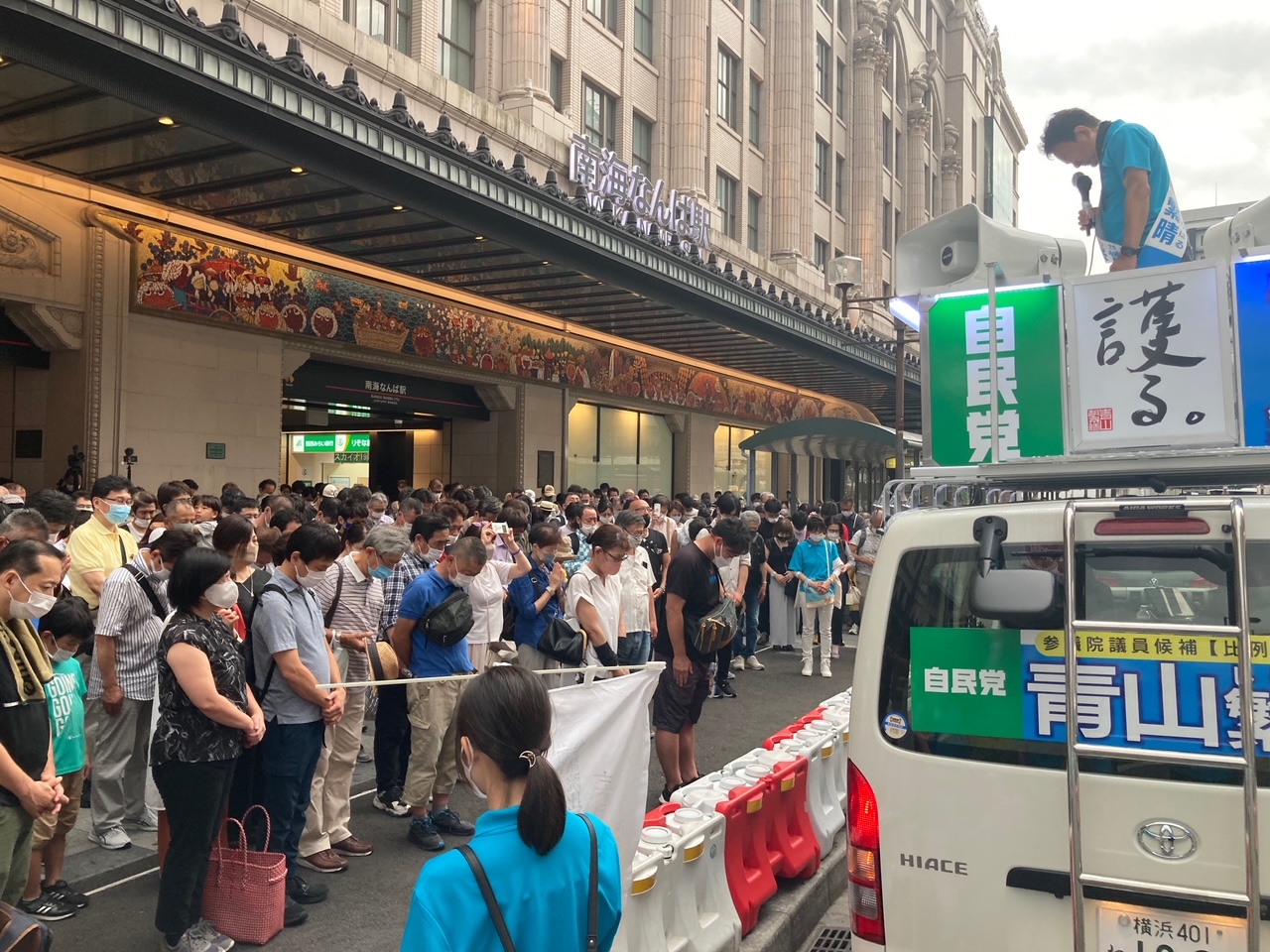 ▼最終日、参院選18日目の7月9日土曜は、畏友(いゆう)の安倍晋三元総理への黙祷から始めました。