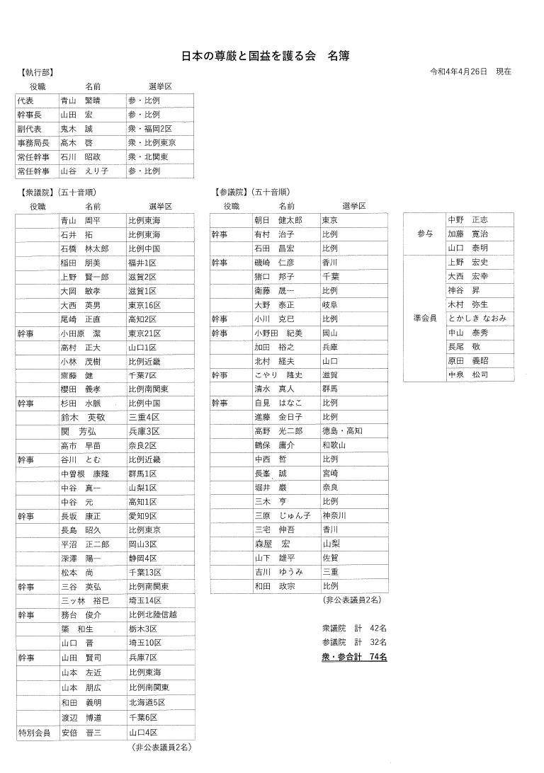 ※参考までに、「日本の尊厳と国益を護る会」(護る会)の名簿です。