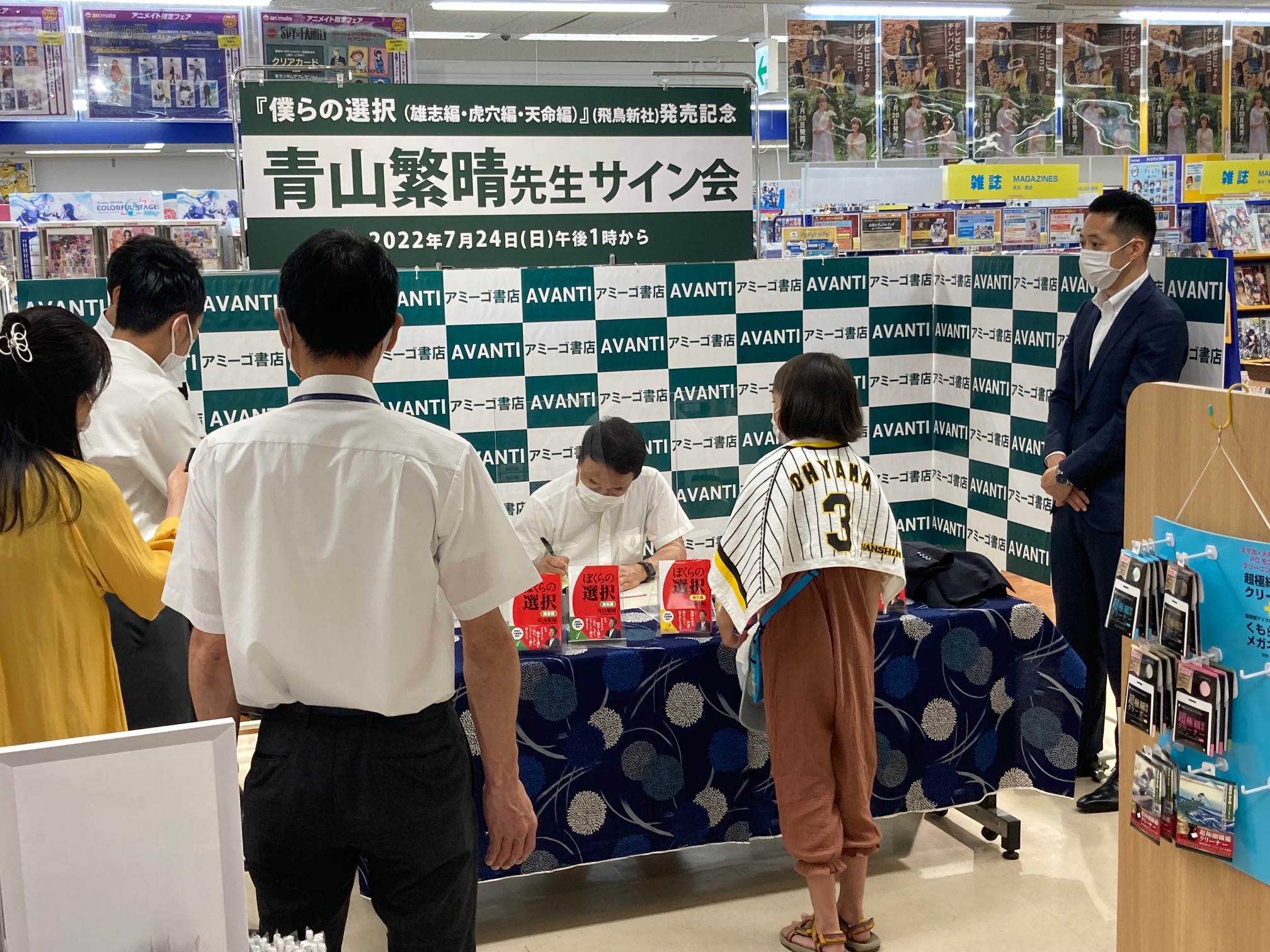 ▼ノンフィクションの最新刊「ぼくらの選択」 ( 雄志篇、虎穴篇、天命篇の全3巻 ) のサイン会を、7月24日の日曜に、京都アバンティブックセンターで行いました。