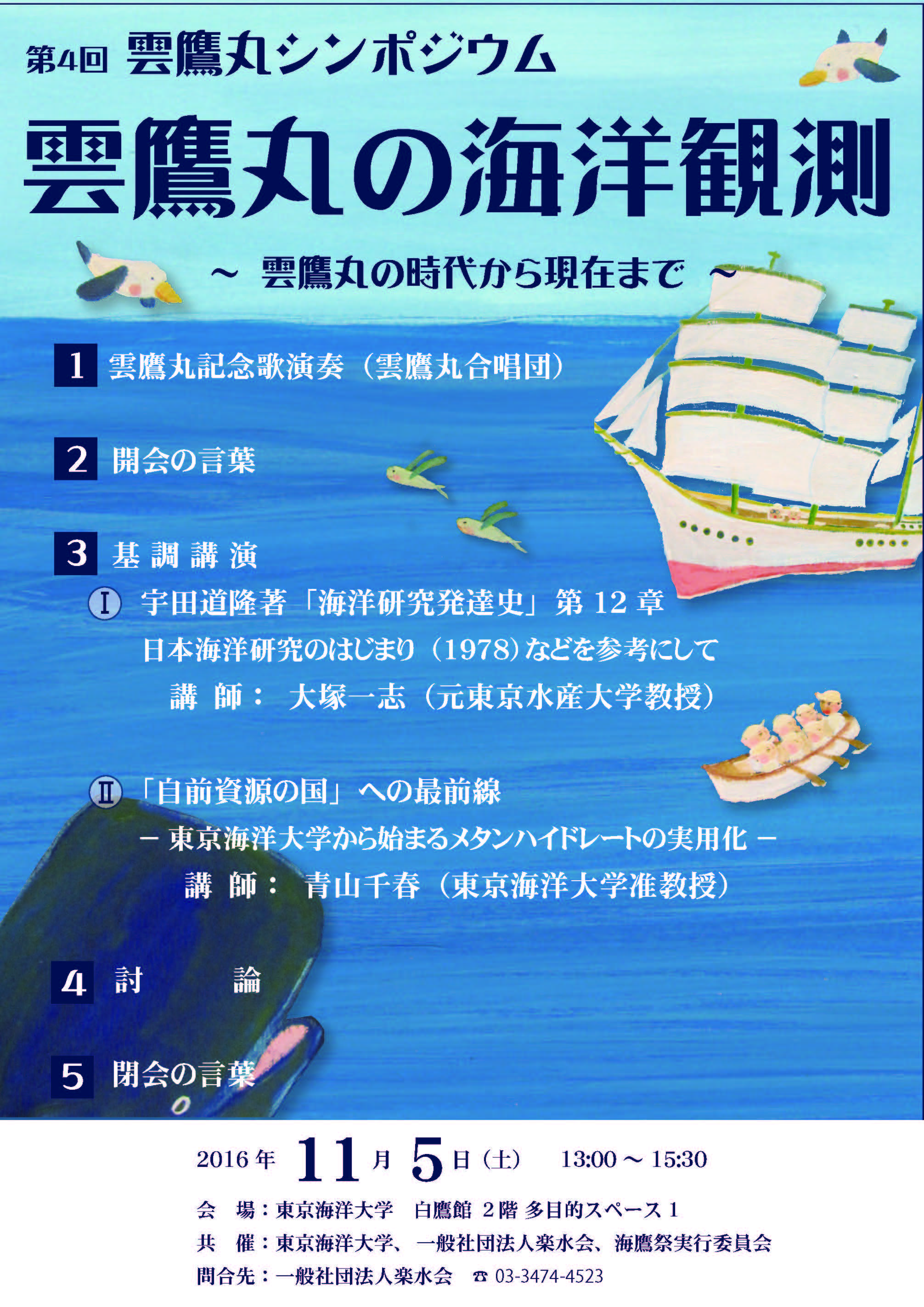 シンポジウムの名前の「雲鷹丸」は、「うんようまる」と読みます。