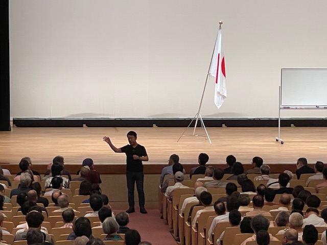 ▼きのうの独立講演会@神戸ポートピアホールのワンシーンです。