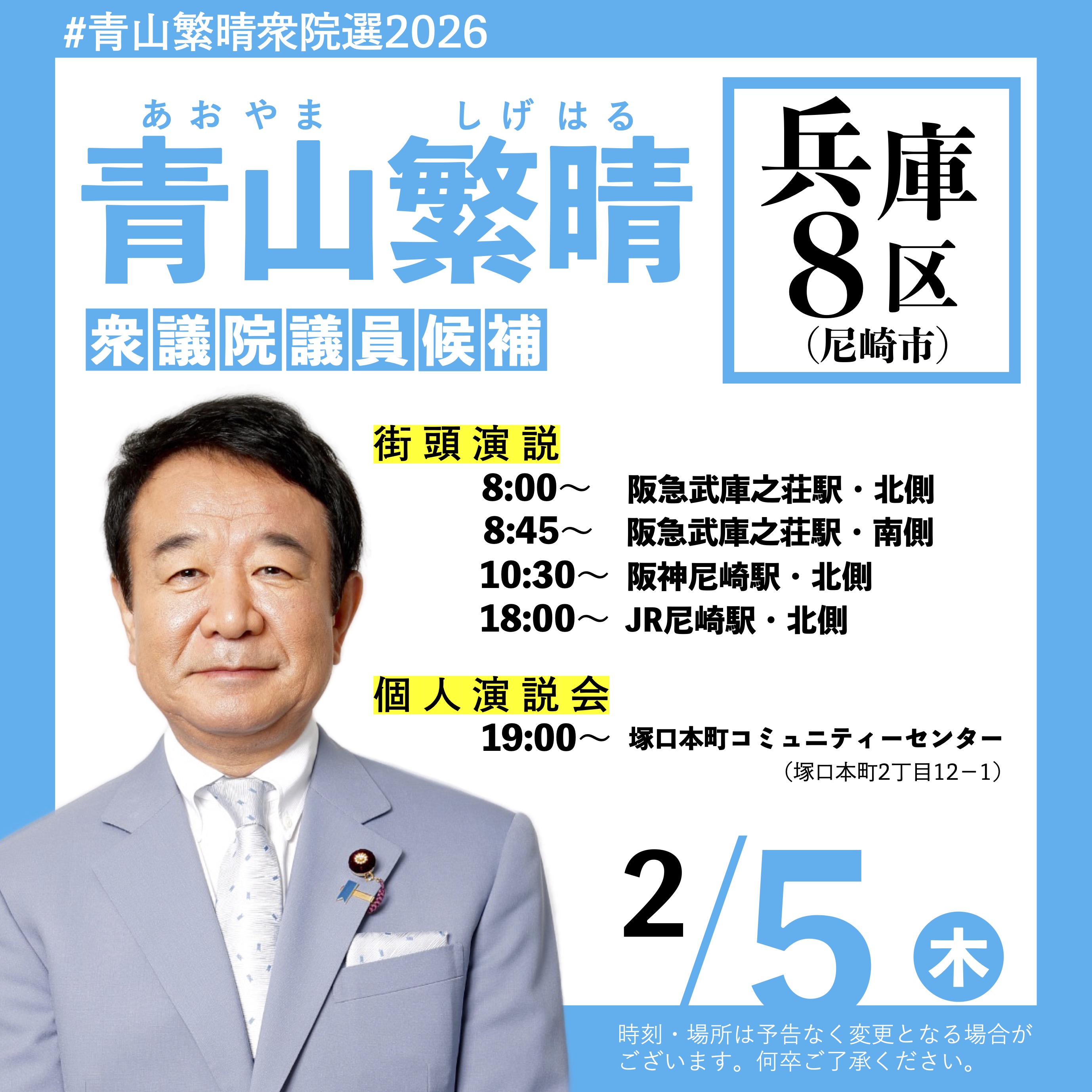 「青山さんが尼崎で衆院選に出てはるで〜」