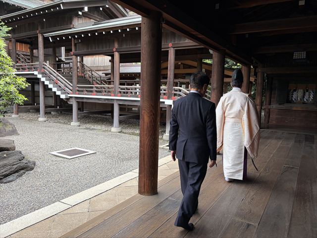 まず大塚海夫宮司らとお会いし、意見交換をいたしたあとに、神官に導かれて拝殿に昇殿しました。
