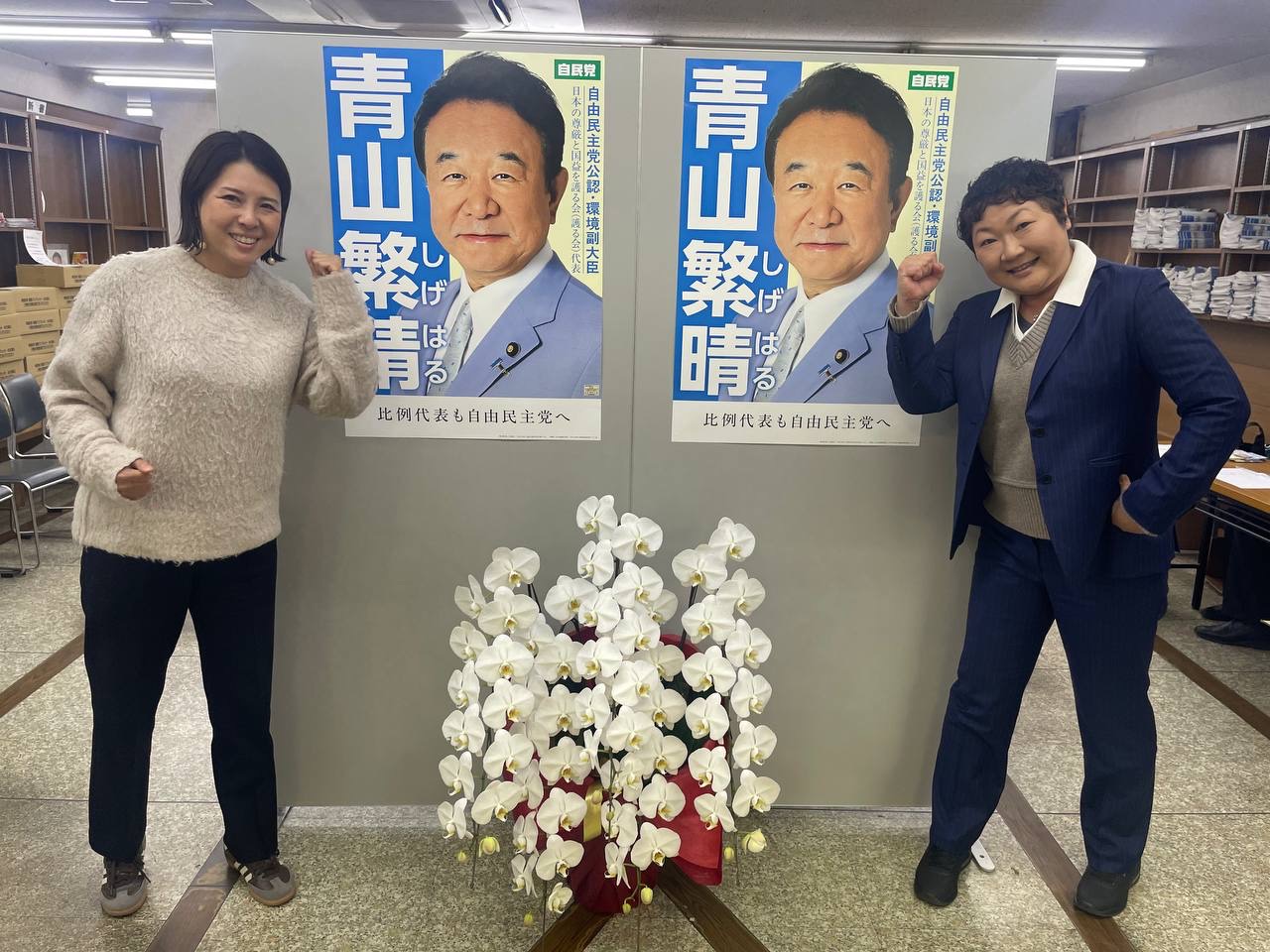 ▼そしてショウタこと須藤奨太市議と同期の、渕上ひろみ大阪市議 ( 右 )が、尼崎の庶民的な商店街にある選挙事務所を訪ねてくれました。 ( 左は、渕上さんの右腕である秘書さんの東儀樹美さん )