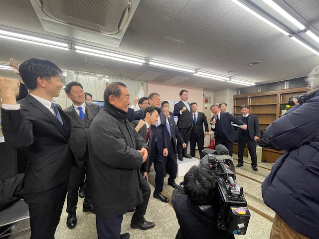 ほぼ寝る時間が無いまま、早朝6時40分にはホテルを出て、駅頭に立ち、朝の忙しい通勤通学のみなさんに「おはようございます」と声を掛けるだけで、握手を求められたりすることの多いことに感激しつつ、強烈な寒気のなか、長いいちにちの戦いを始めるのでした。