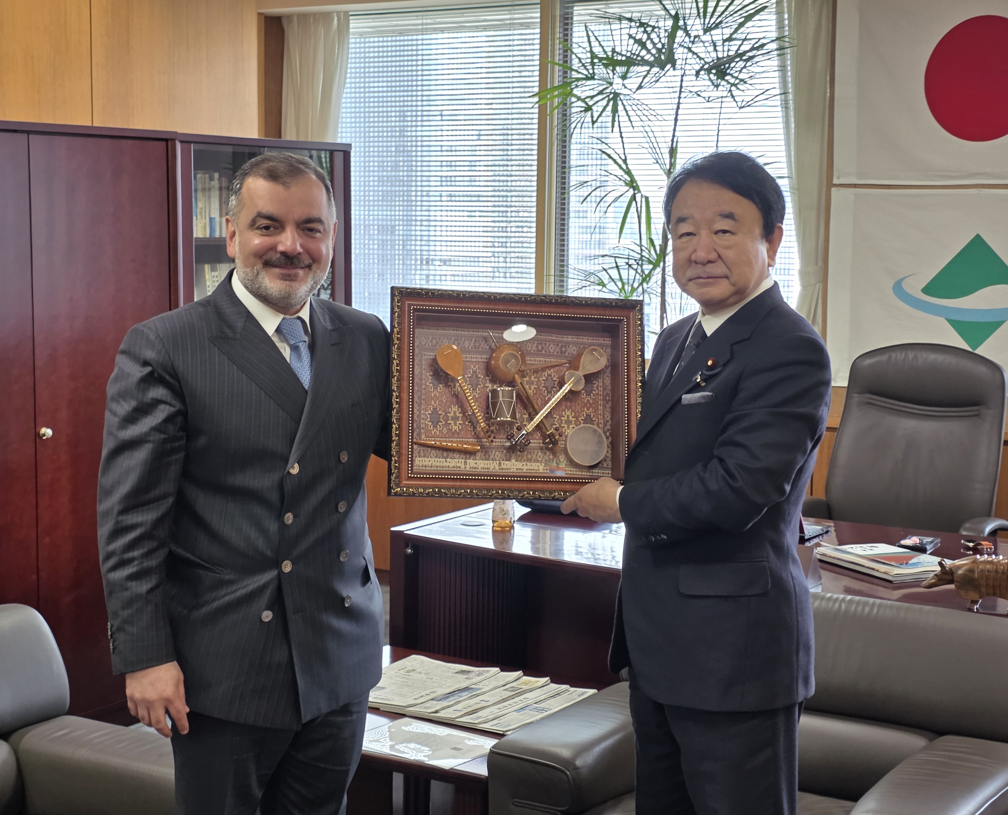 ▼ちなみに今日は、アゼルバイジャンのタリボフ駐日大使が環境省の副大臣室に訪ねてこられました。