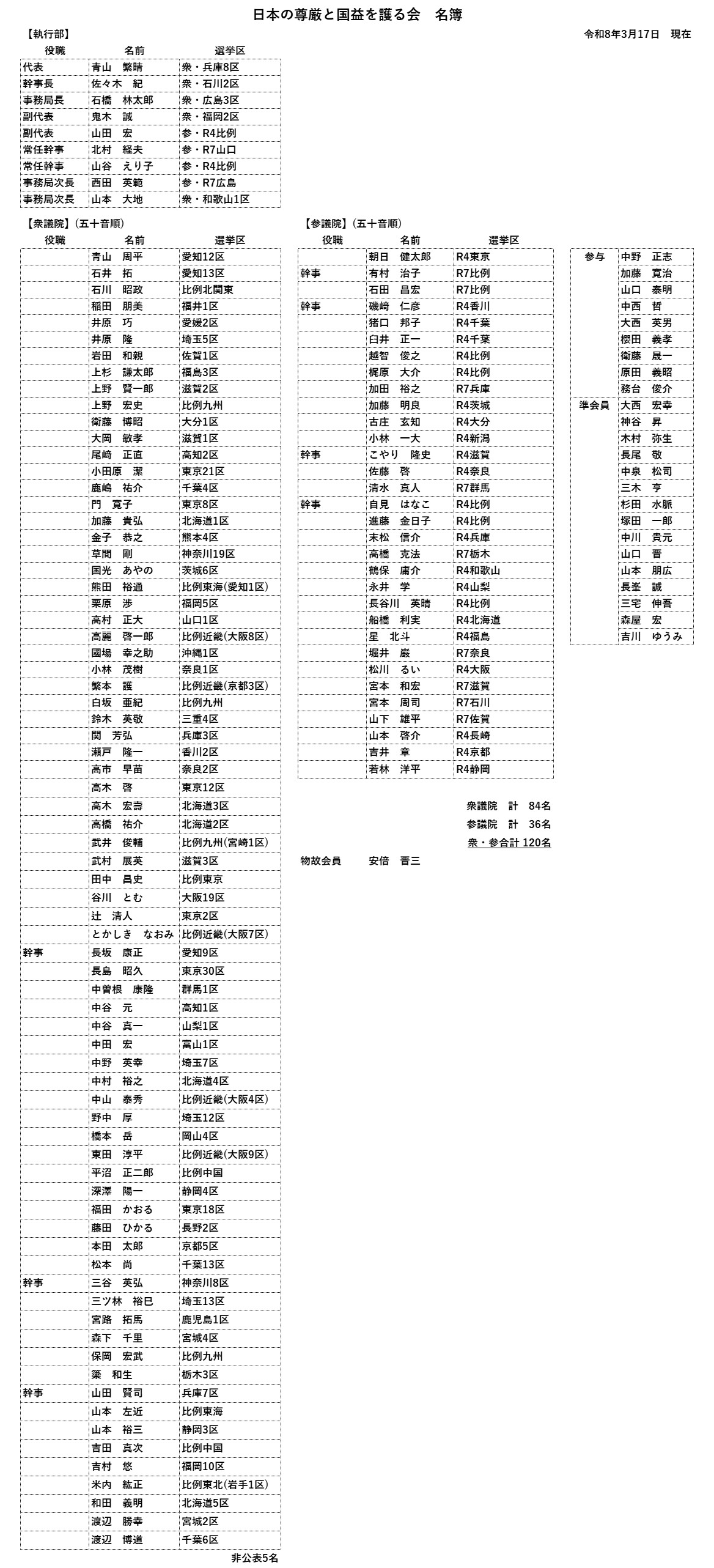 護る会は120人になりました これが最新名簿です ( 誤りも訂正してあります )