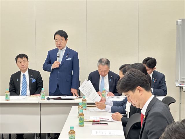 わたしの左が、佐々木紀幹事長、右が、山田宏副代表(参院。衆院の副代表は鬼木誠代議士)です。